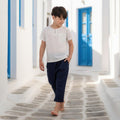 Com um ar leve e refinado, essa bata infantil branca com listras marinho é a escolha ideal para mães que buscam unir sofisticação e conforto no visual dos pequenos. O modelo conta com gola redonda, abertura frontal com botão e um charmoso bolsinho no peito, criando uma peça versátil que transita do casual ao elegante com facilidade. Feita com tecido leve, ela oferece um caimento impecável e frescor para os dias mais quentes. Uma peça atemporal, perfeita para passeios especiais e encontros em família — estilo e qualidade que acompanham todas as fases da infância.